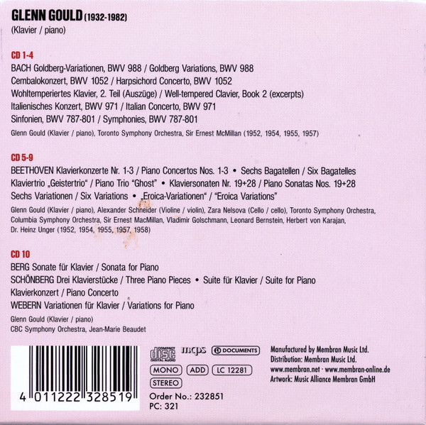 GLENN GOULD Bach · Beethoven · Schönberg · Webern · Berg CD-Box